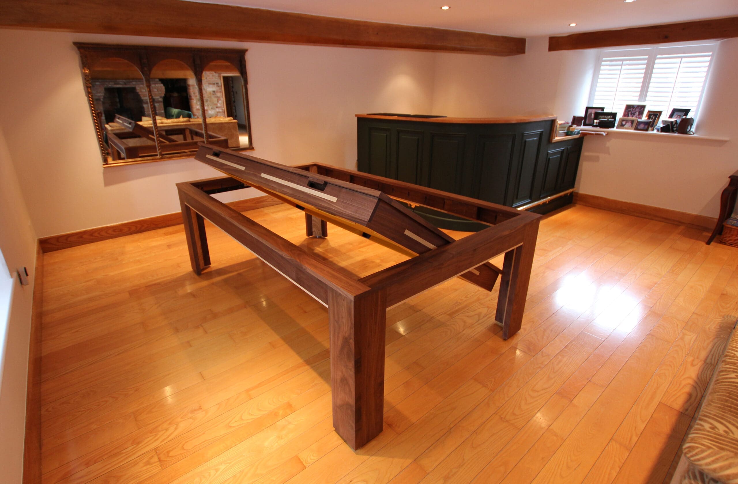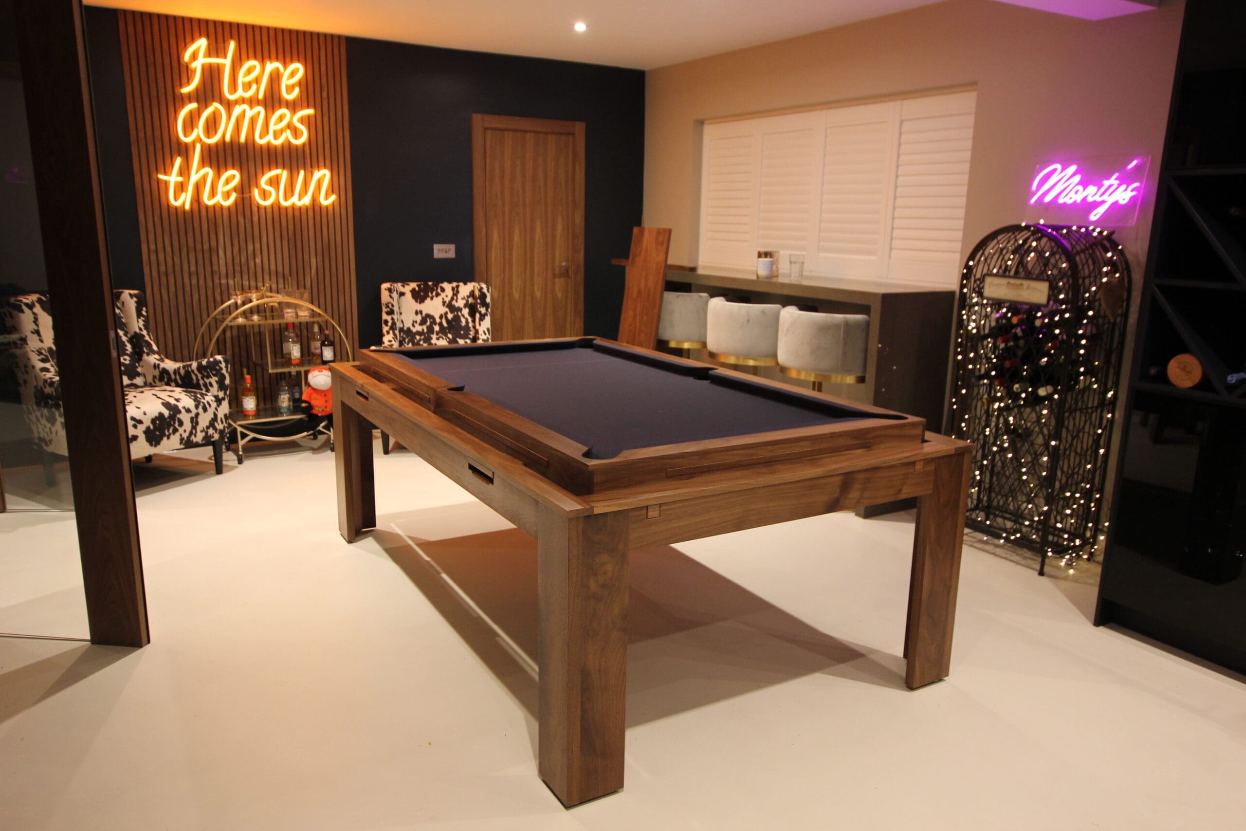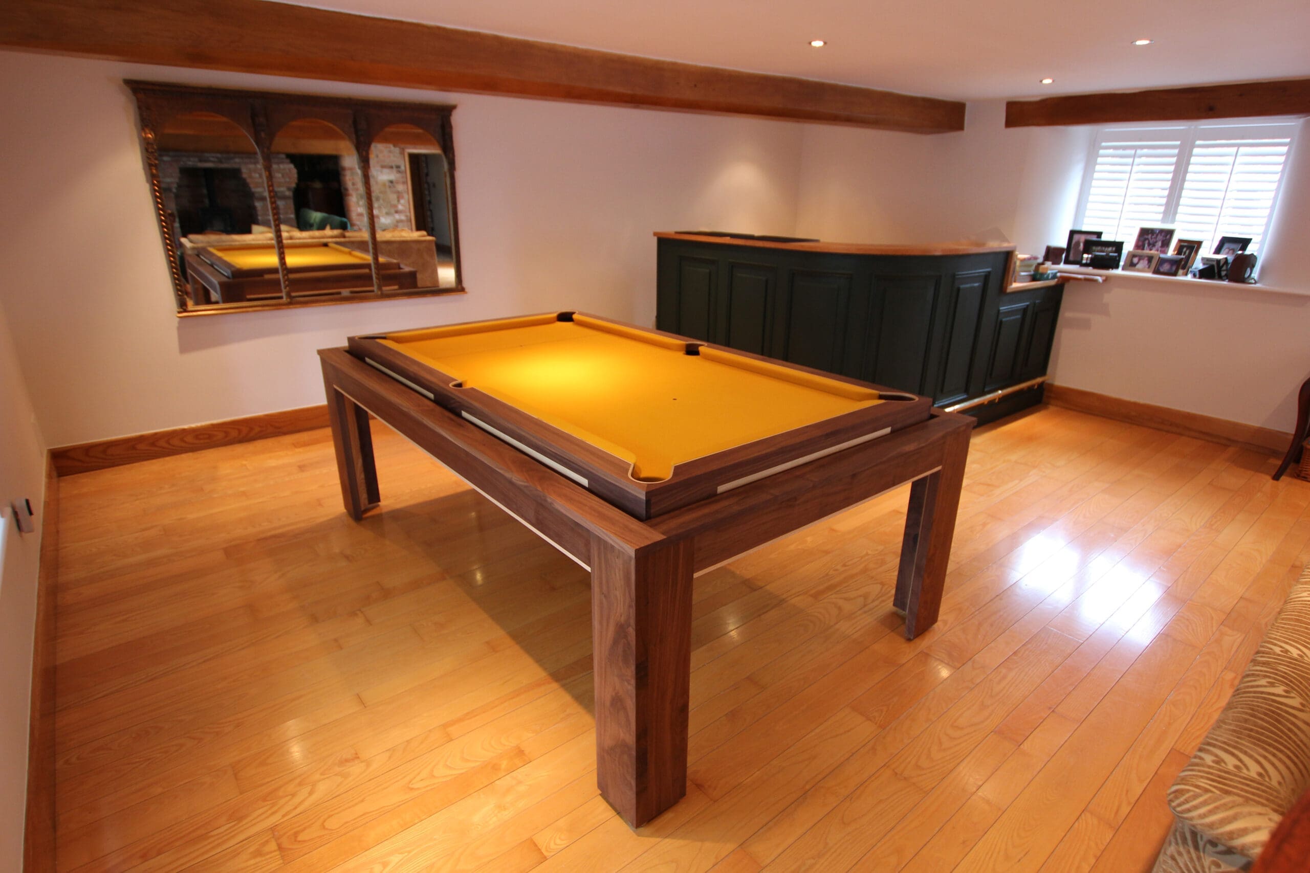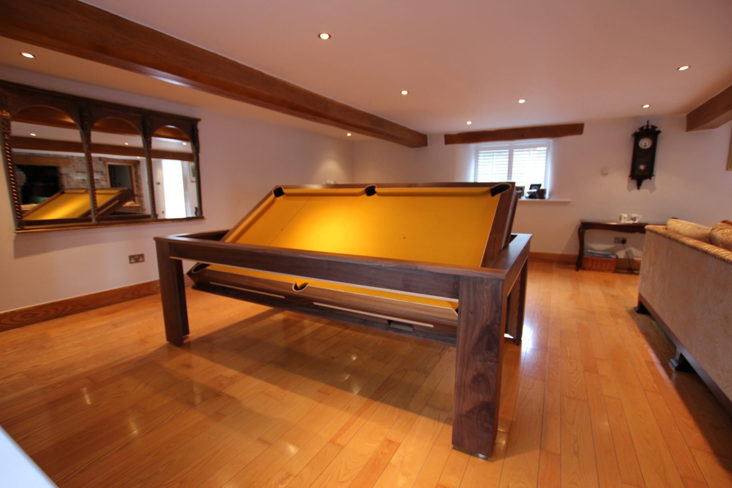 The Exquisite rollover pool dining table is available in Snooker, English & American pool specifications 5, 6, 7 & 8ft. As with all our rollover tables, the design can be customised or tailored to your exact requirements, whether it’s custom materials, finishes or bespoke design modifications.