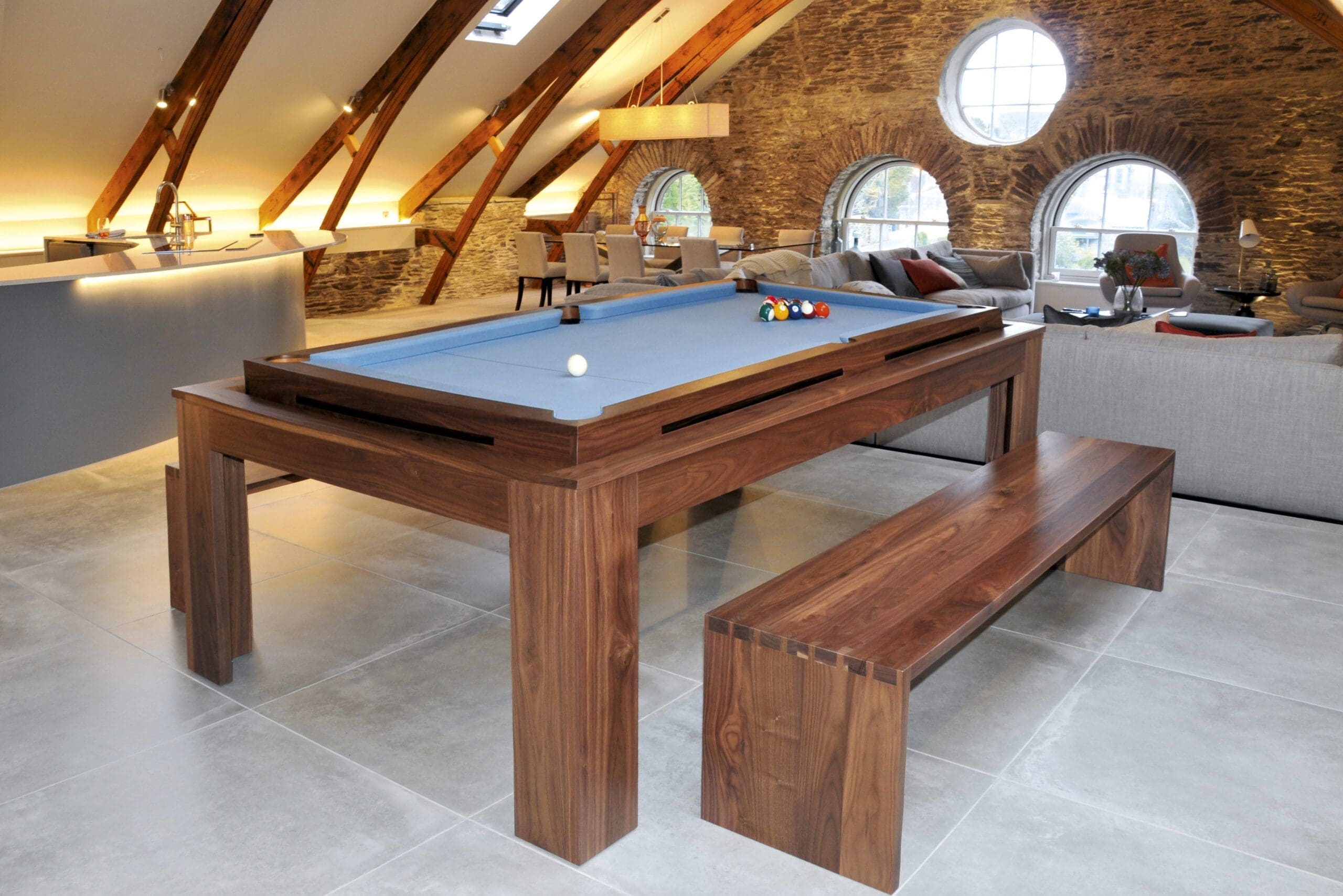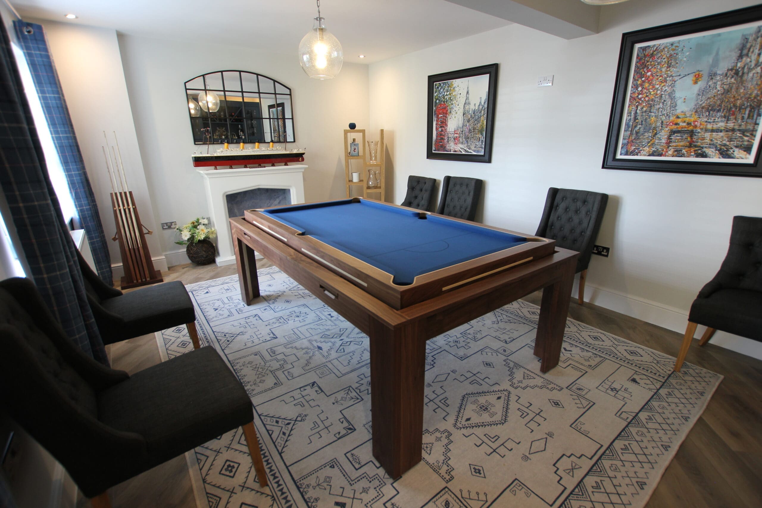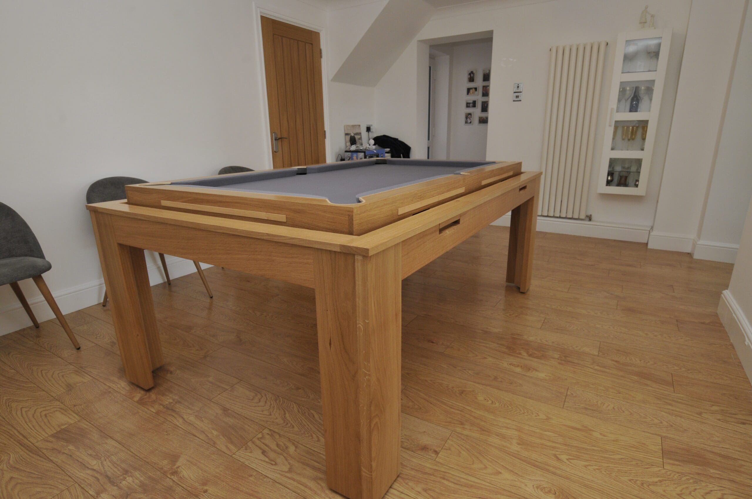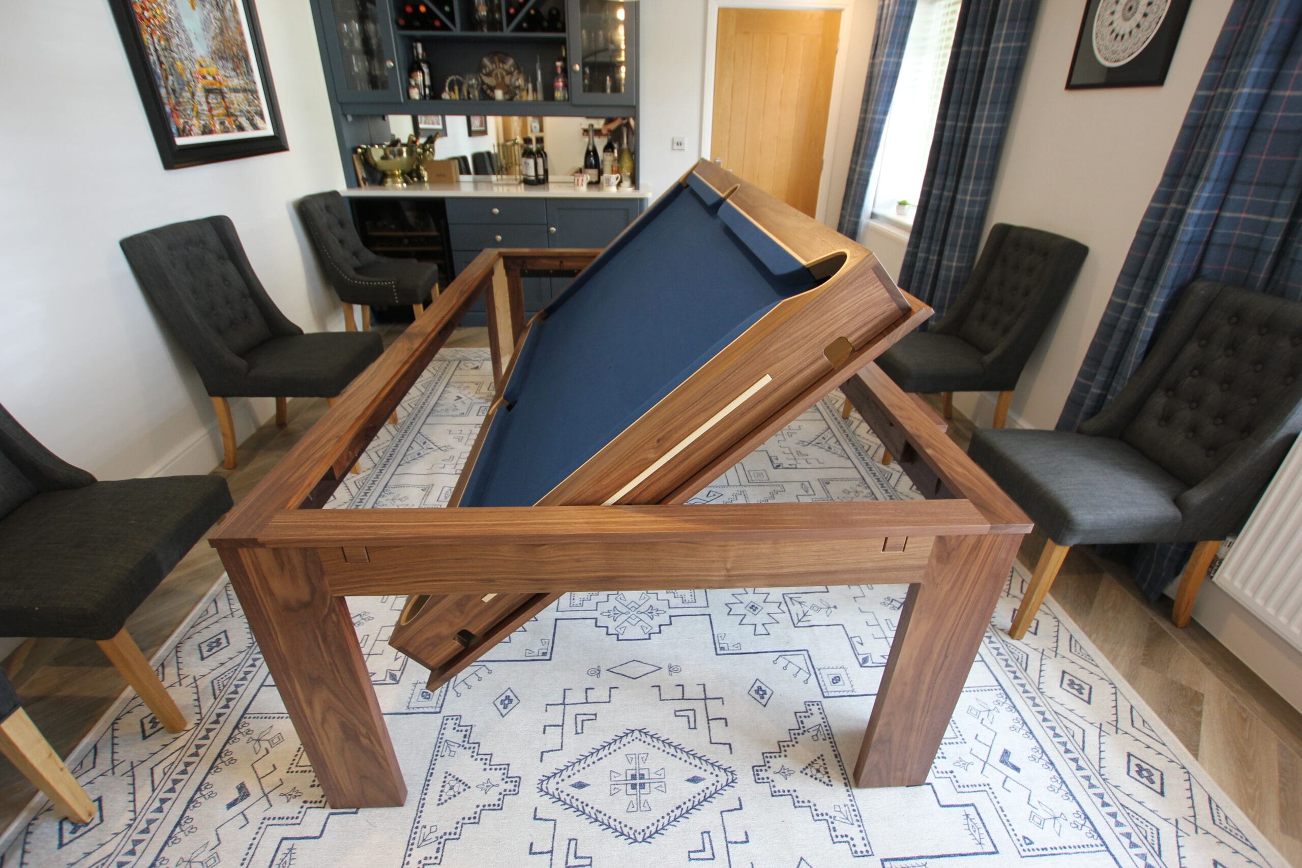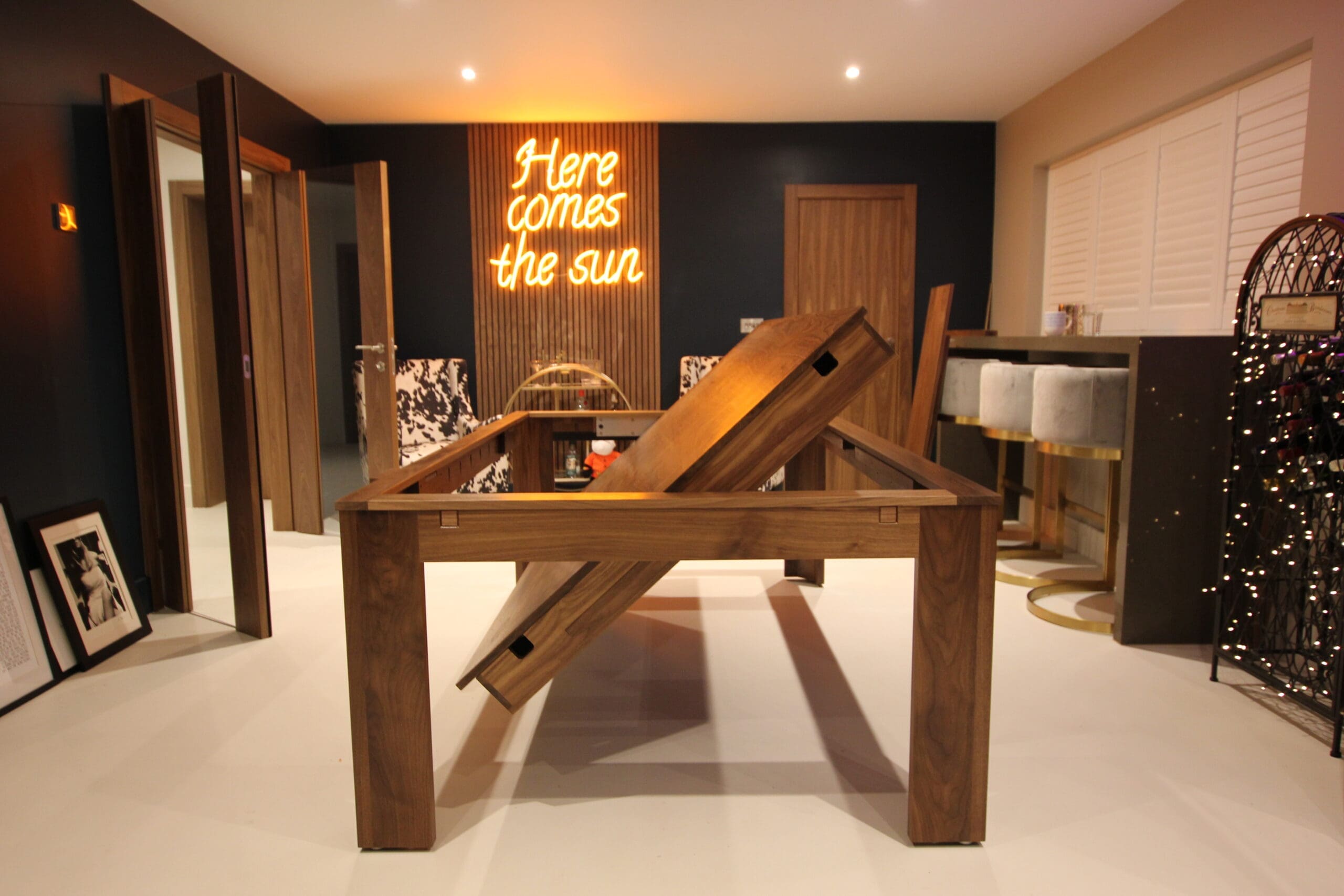The Exquisite rollover pool dining table is available in Snooker, English & American pool specifications 5, 6, 7 & 8ft. As with all our rollover tables, the design can be customised or tailored to your exact requirements, whether it’s custom materials, finishes or bespoke design modifications.