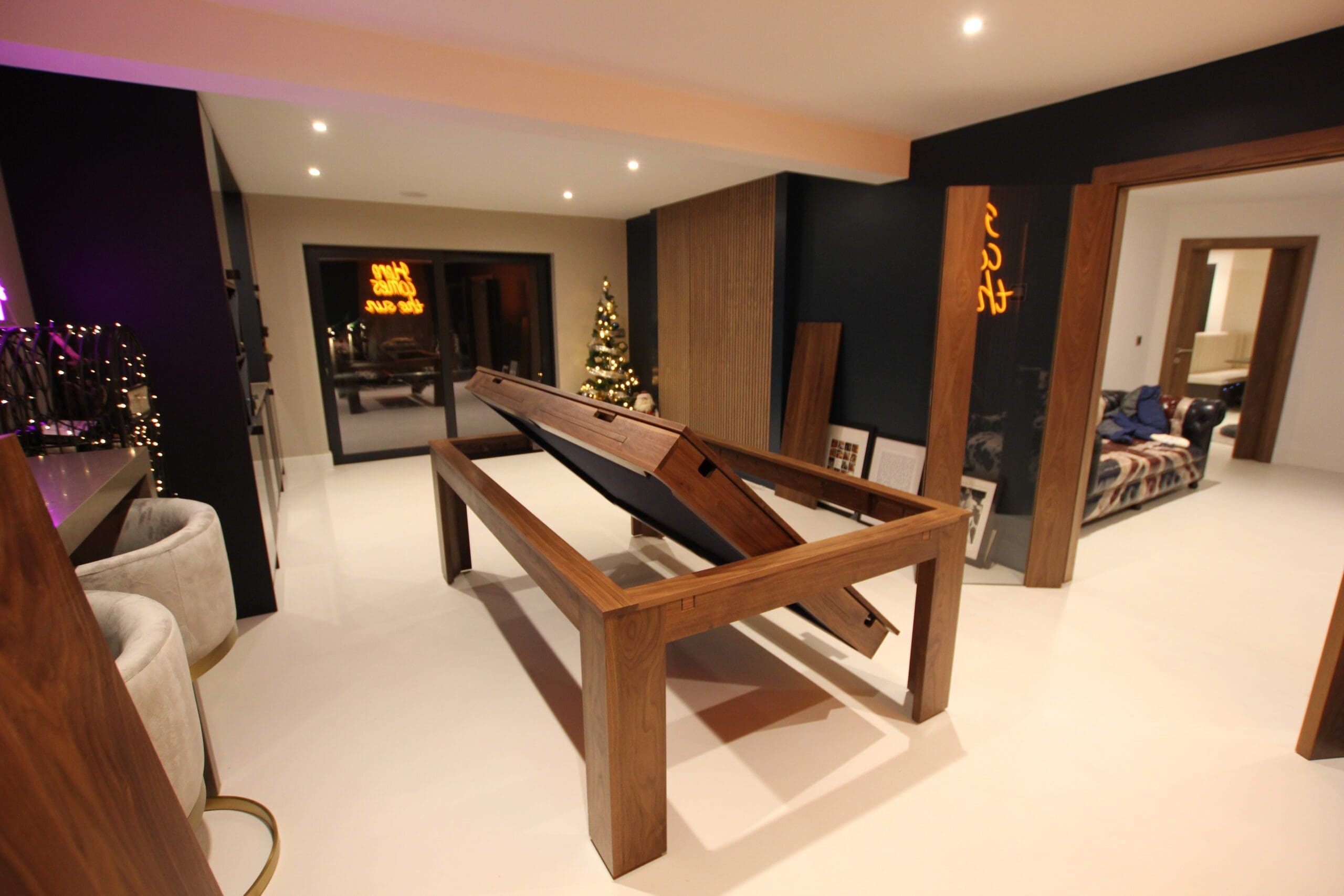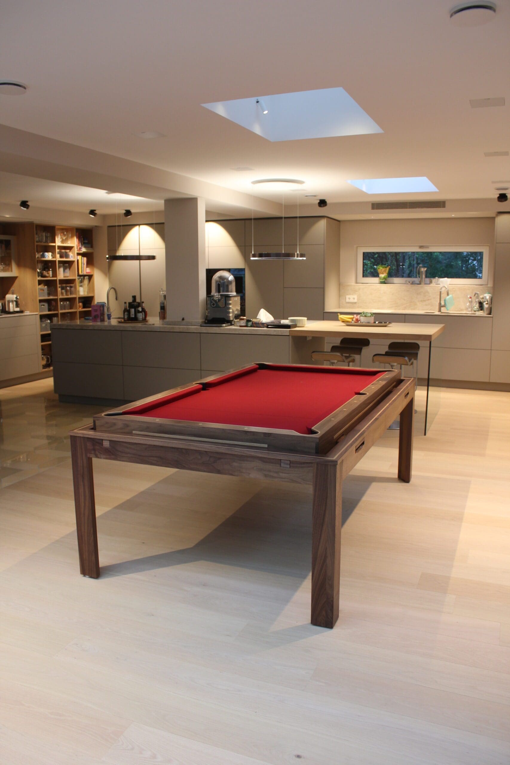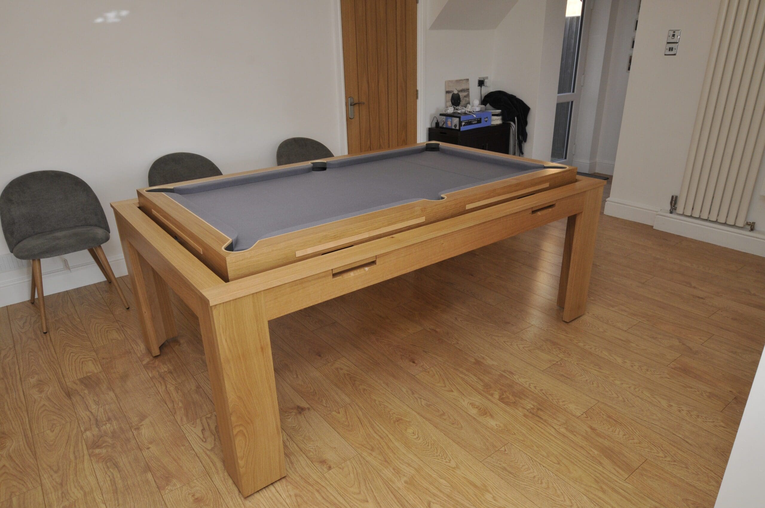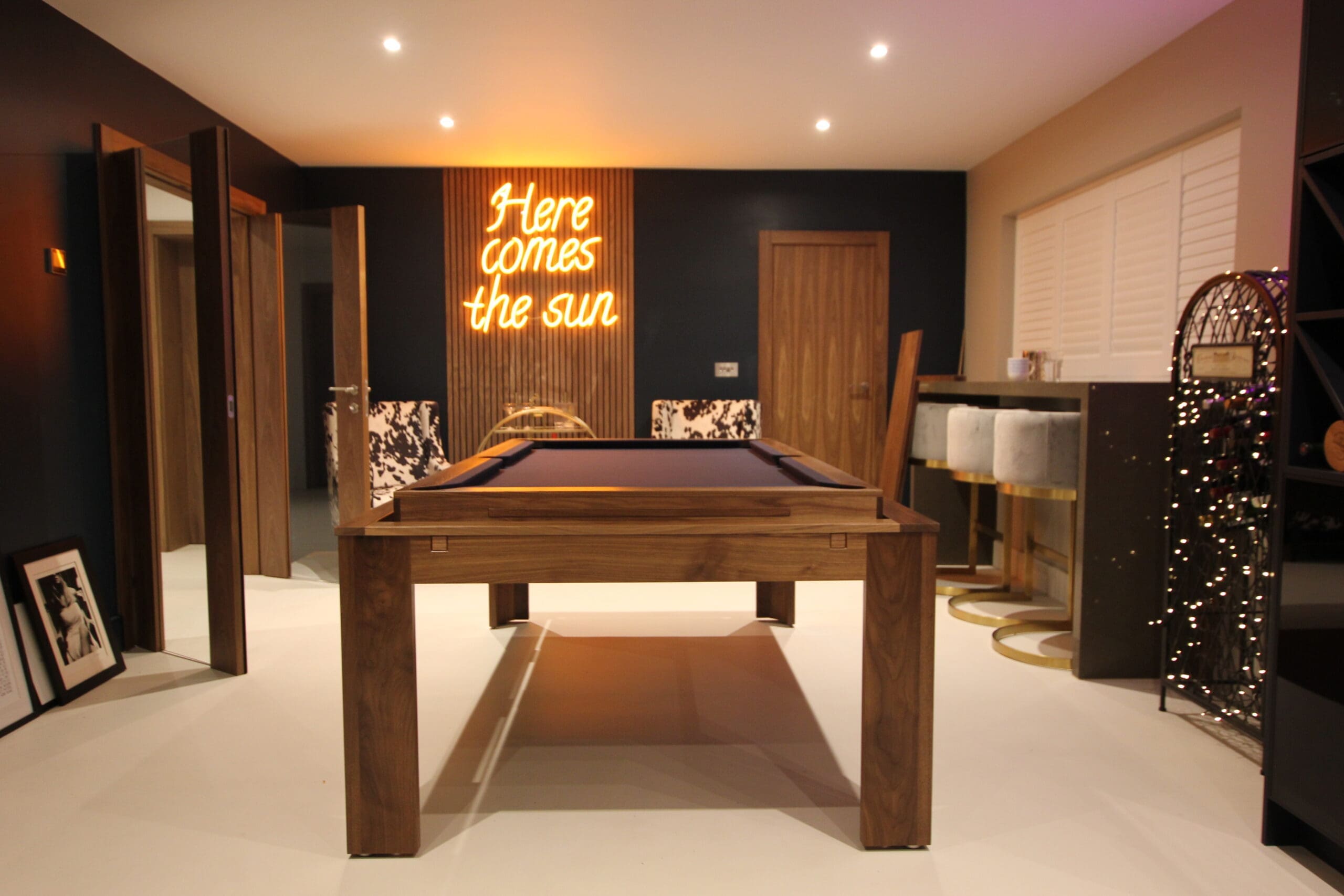 The Exquisite rollover pool dining table is available in Snooker, English & American pool specifications 5, 6, 7 & 8ft. As with all our rollover tables, the design can be customised or tailored to your exact requirements, whether it’s custom materials, finishes or bespoke design modifications.
