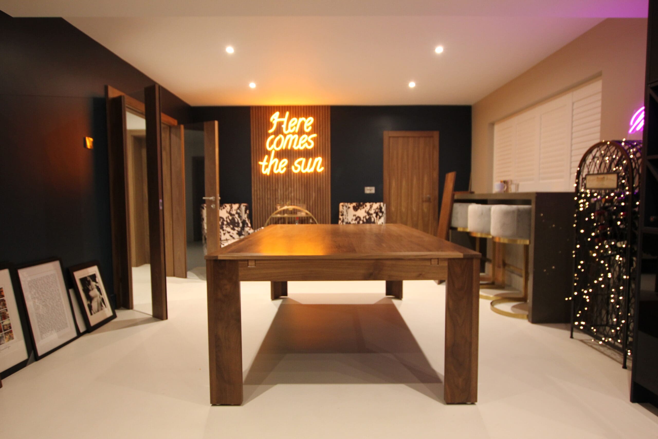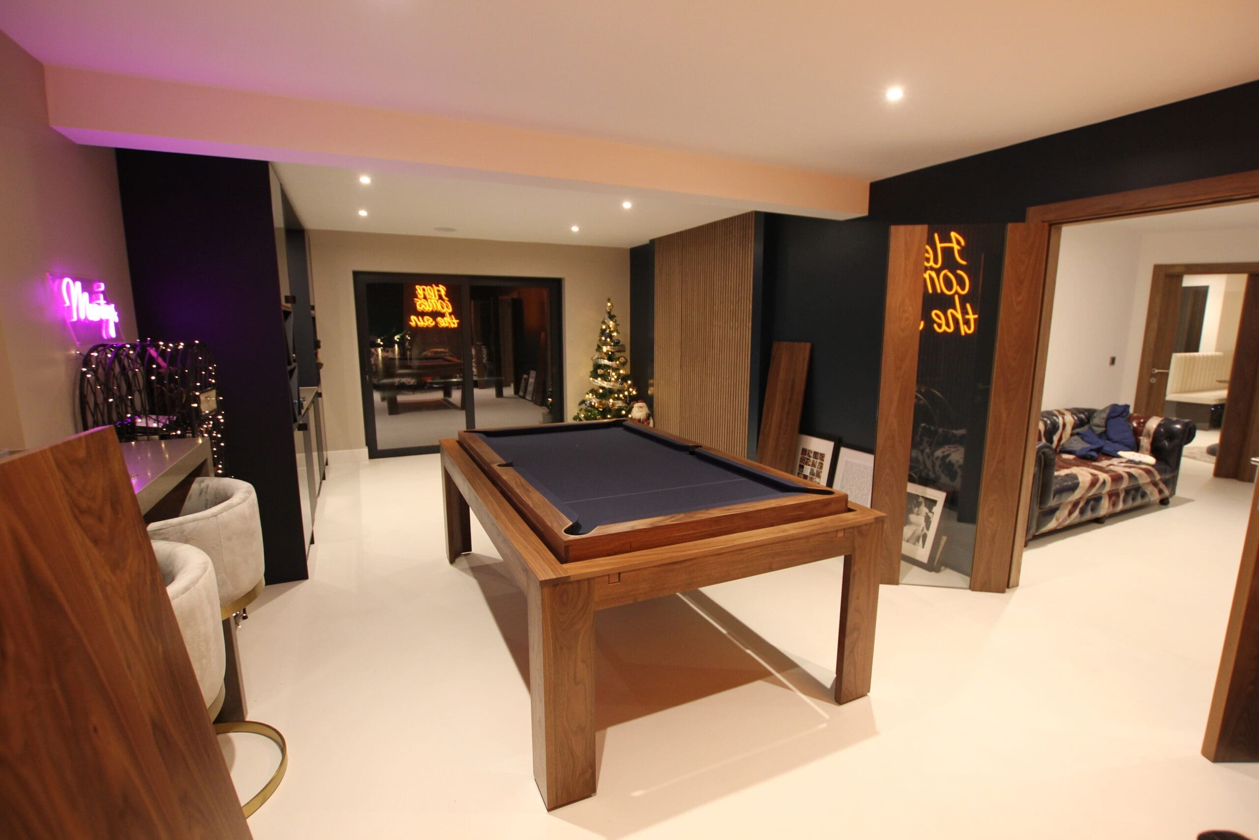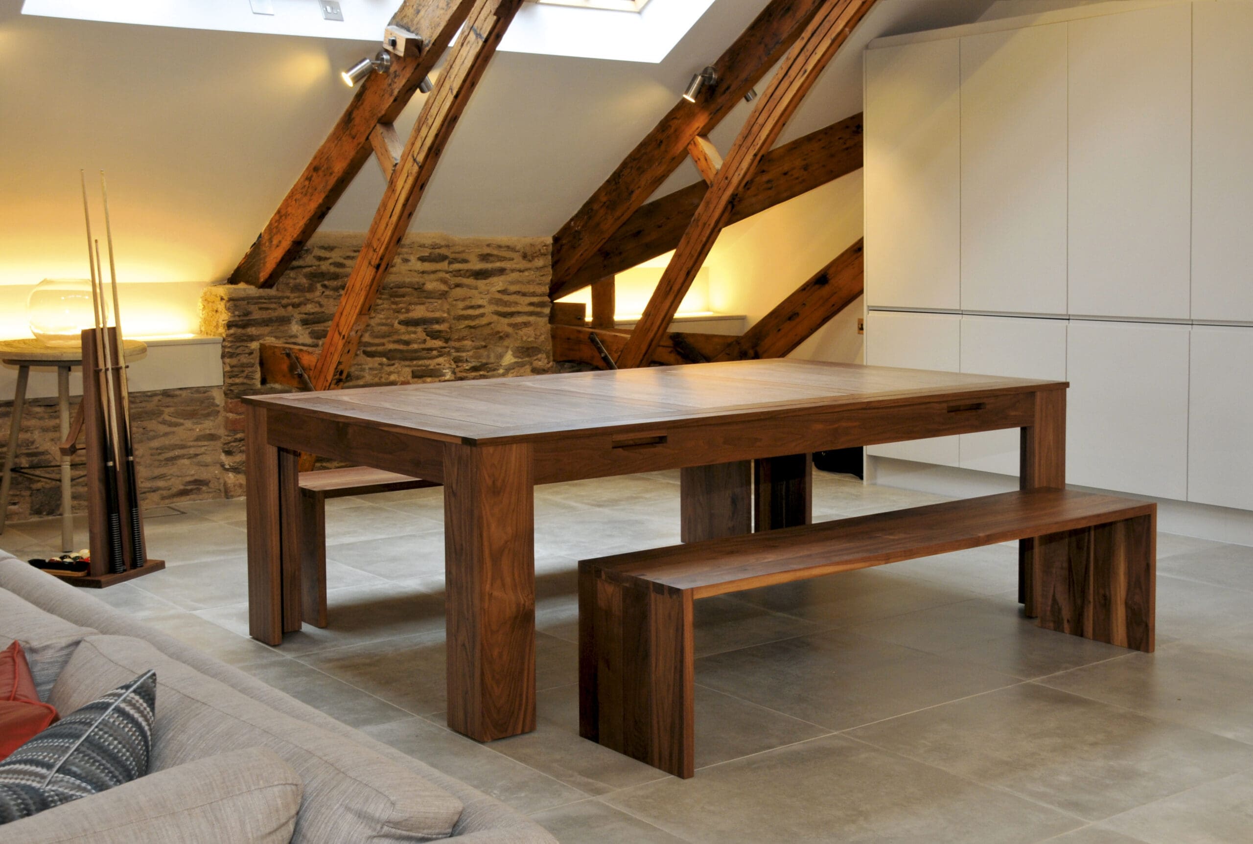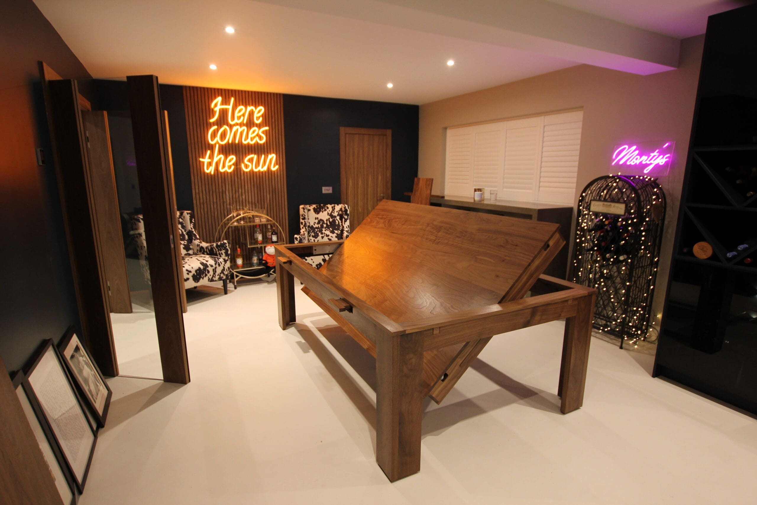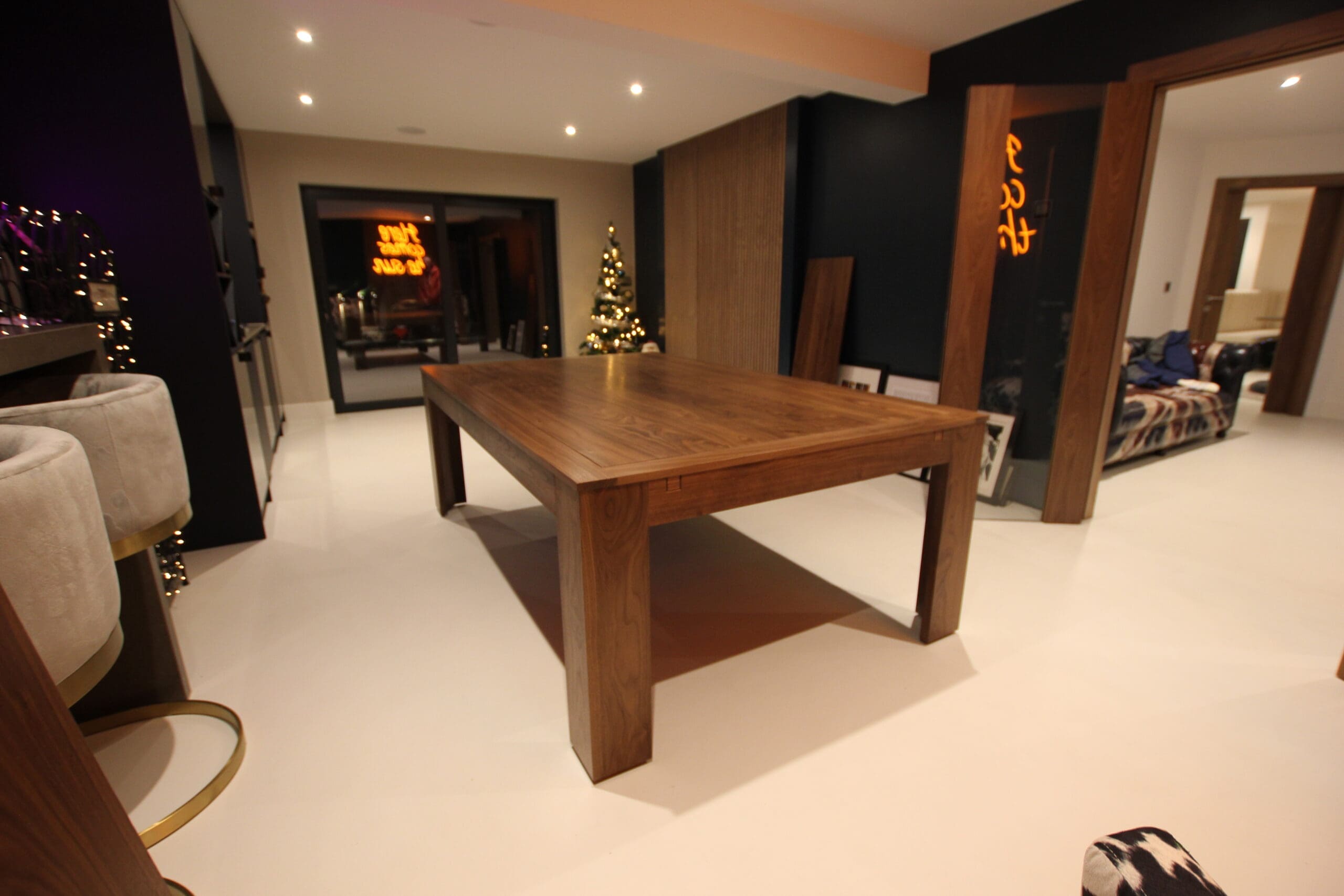The Exquisite rollover pool dining table is available in Snooker, English & American pool specifications 5, 6, 7 & 8ft. As with all our rollover tables, the design can be customised or tailored to your exact requirements, whether it’s custom materials, finishes or bespoke design modifications.