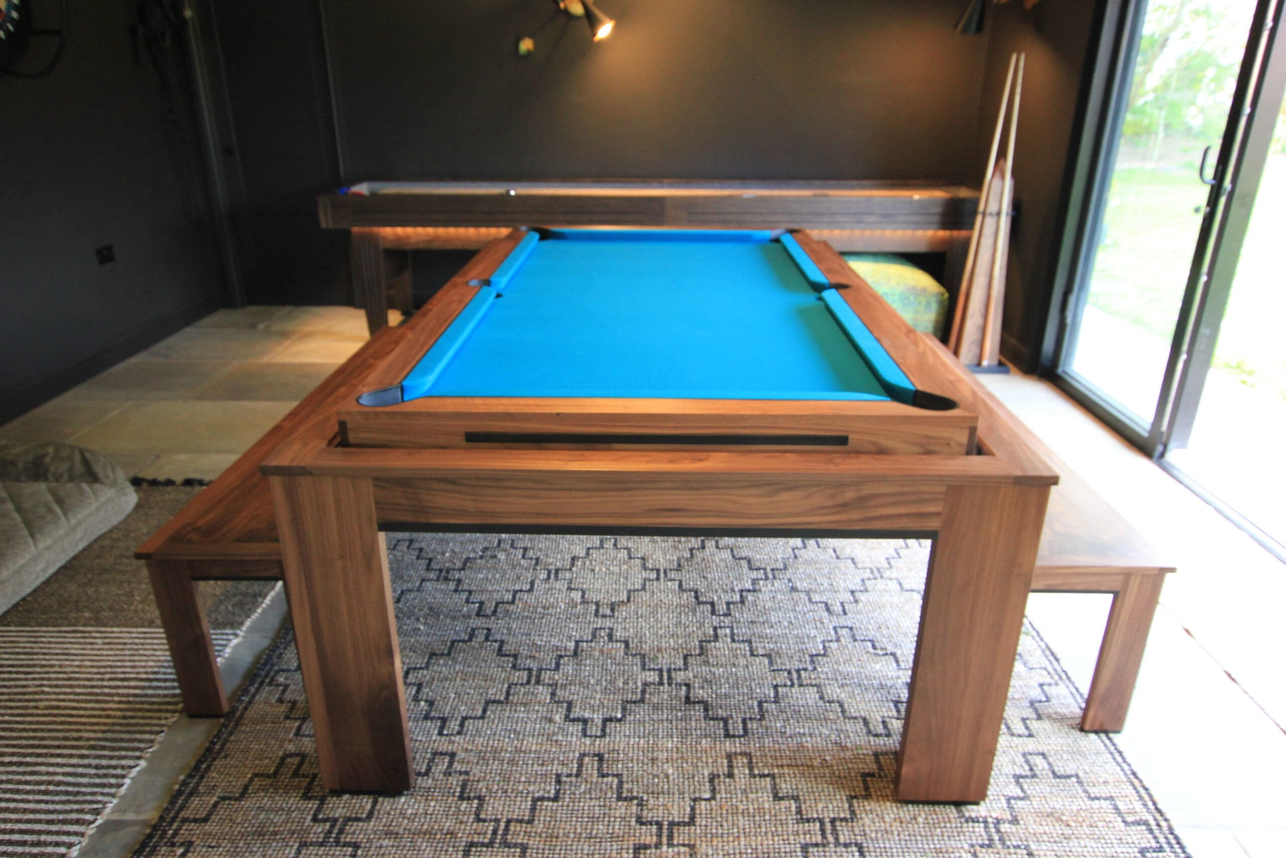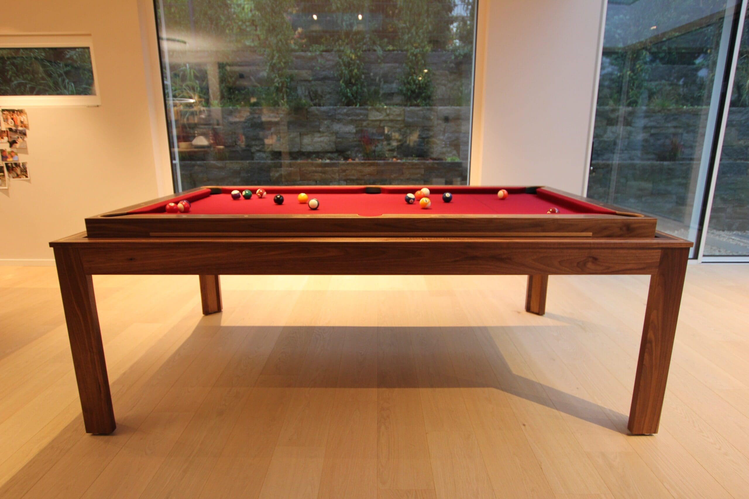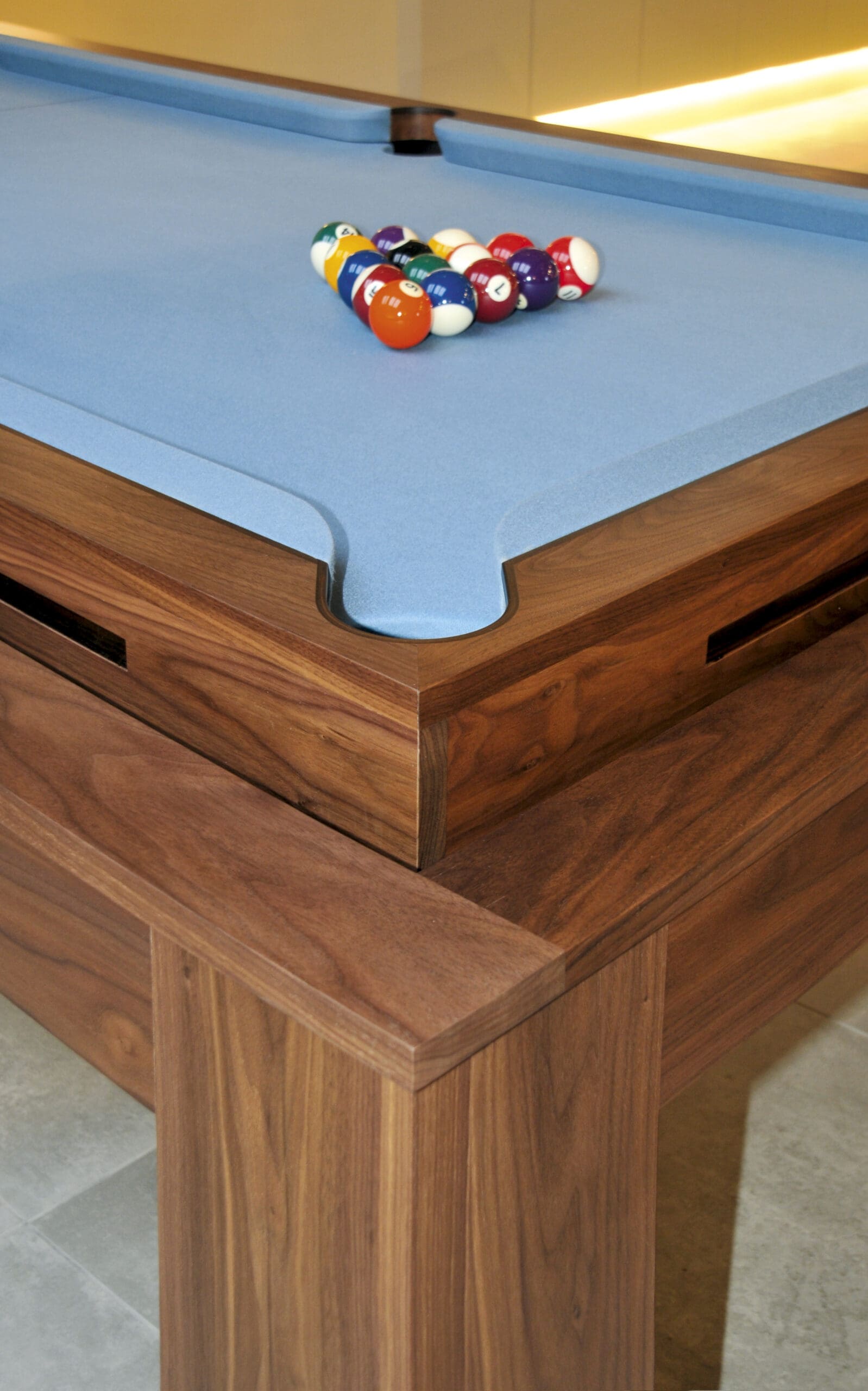 Wow your friends and unsuspecting dinner guests by revealing the hidden transformation of the dining table to a spectacular pool table. Pool and dining heights are often compromised in other tables, but our Rollovers have been designed to not only accommodate standard chairs but to deliver a standard dining height and the official pool playing height.