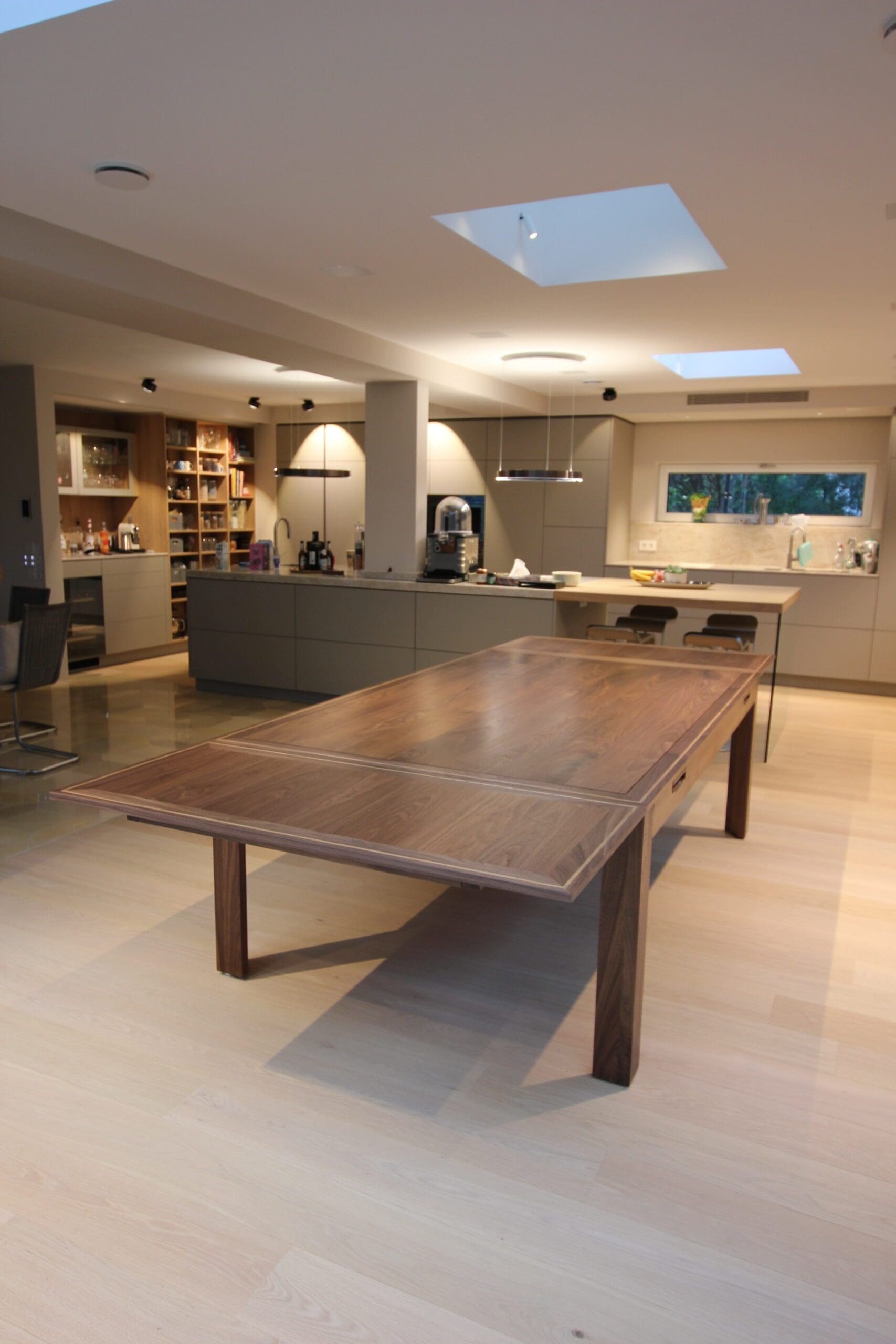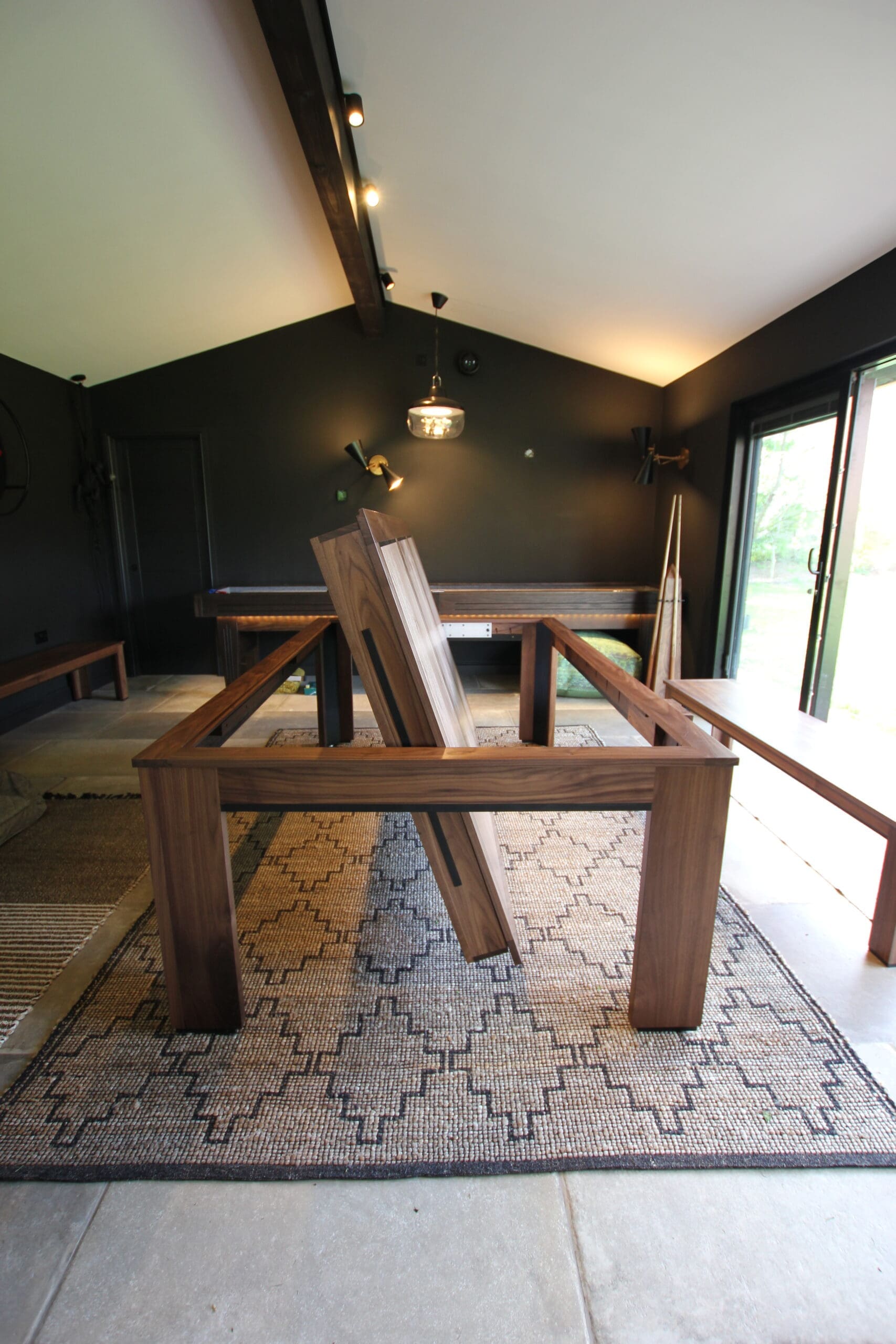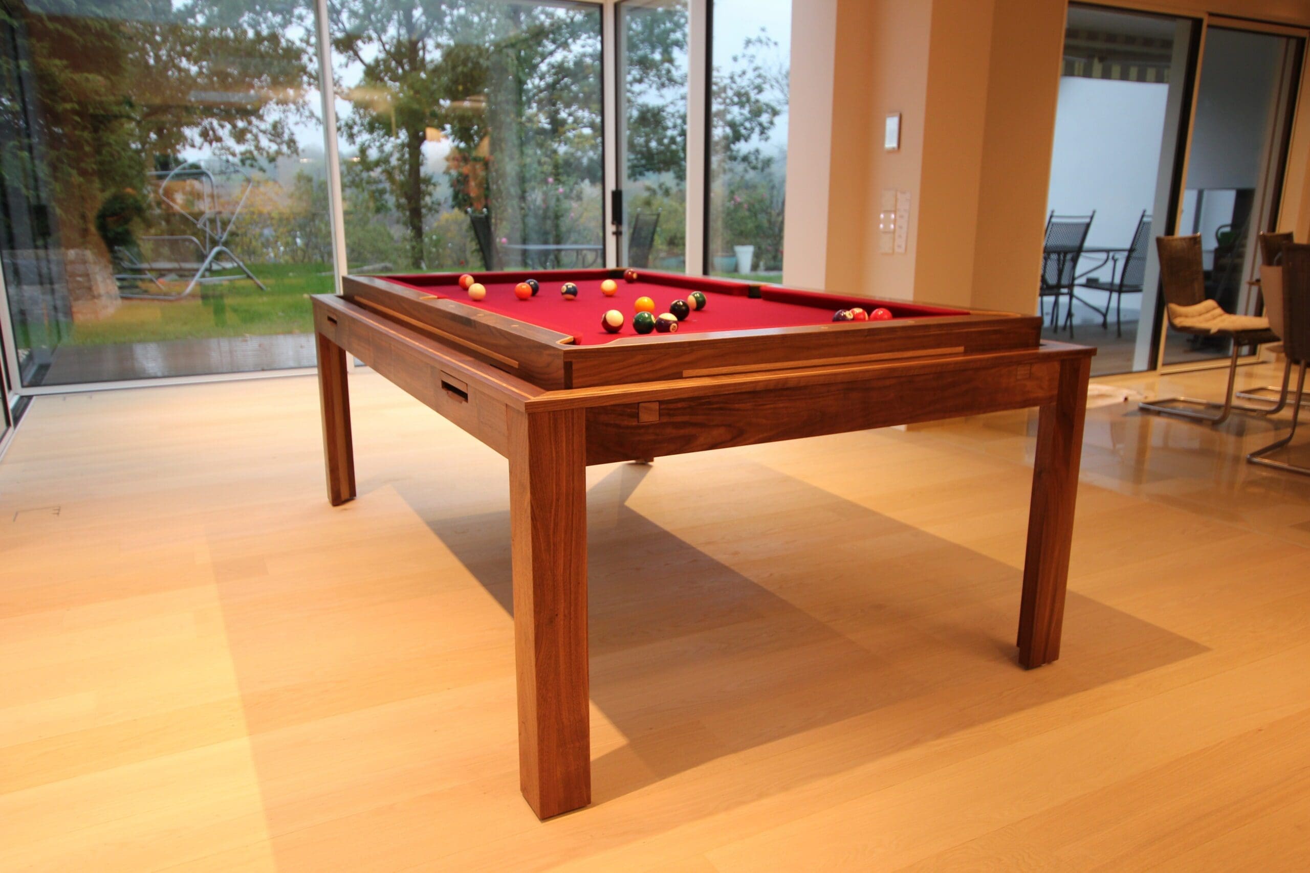 Wow your friends and unsuspecting dinner guests by revealing the hidden transformation of the dining table to a spectacular pool table. Pool and dining heights are often compromised in other tables, but our Rollovers have been designed to not only accommodate standard chairs but to deliver a standard dining height and the official pool playing height.