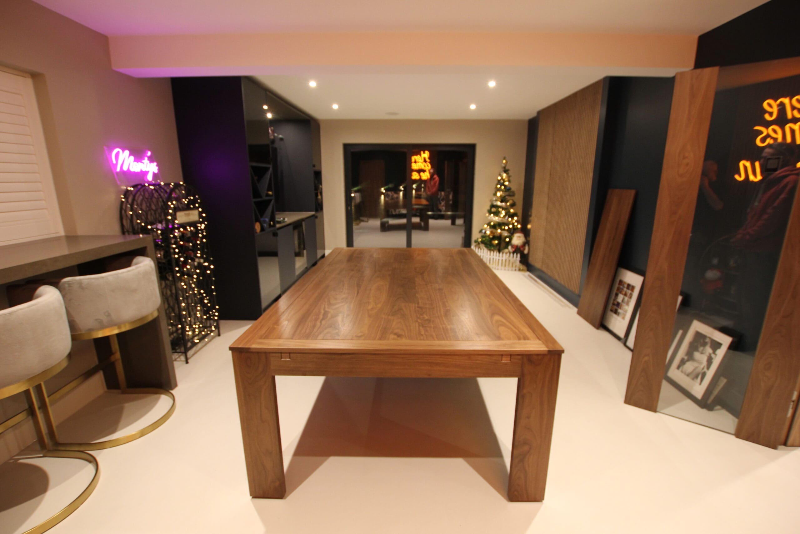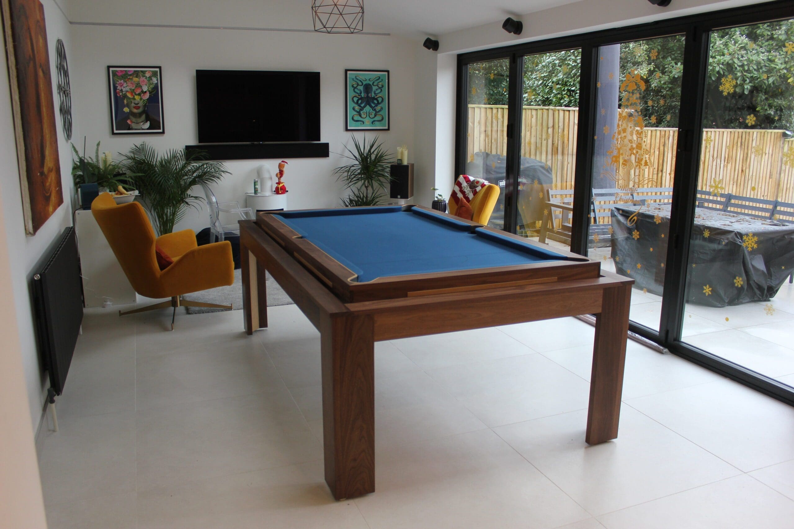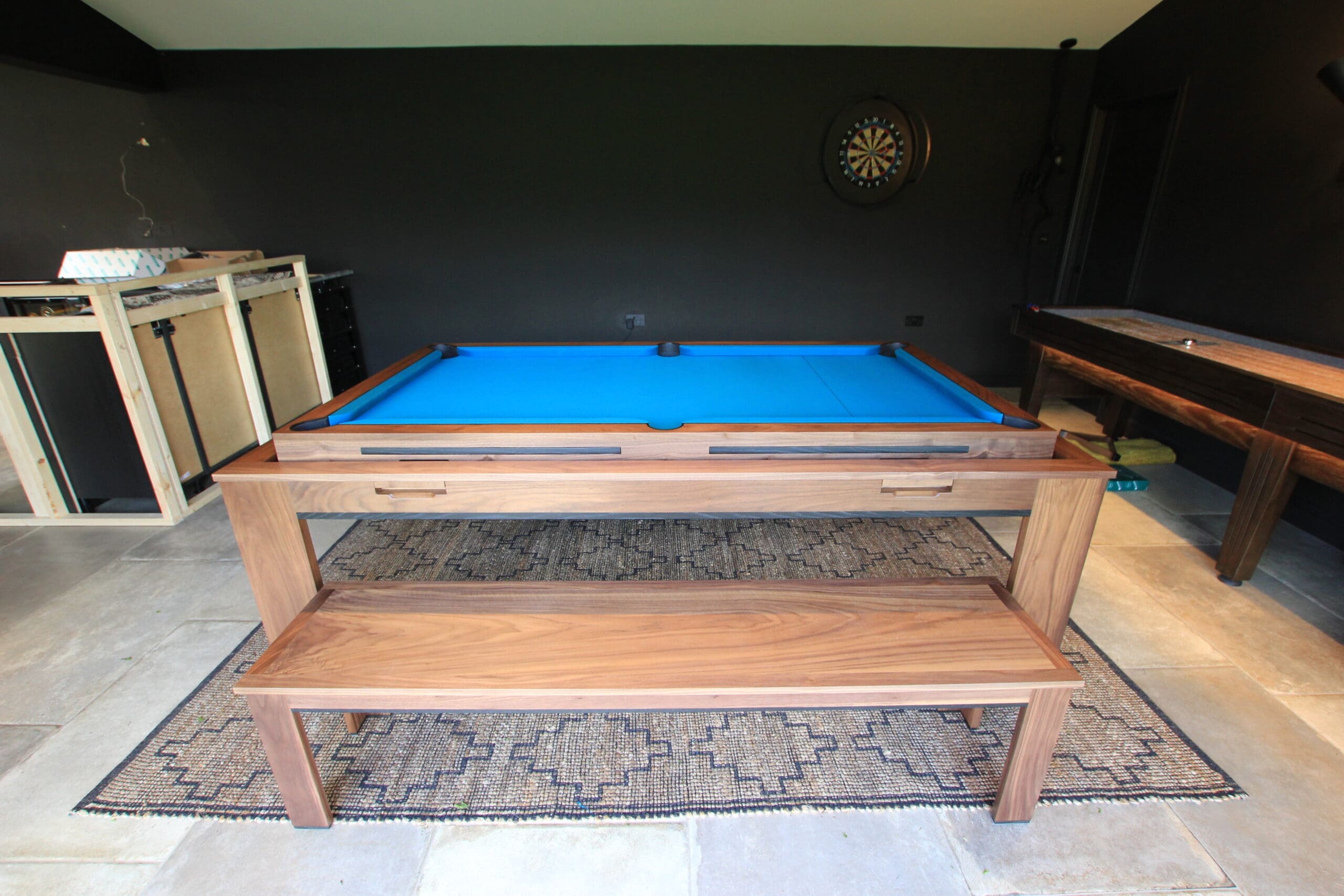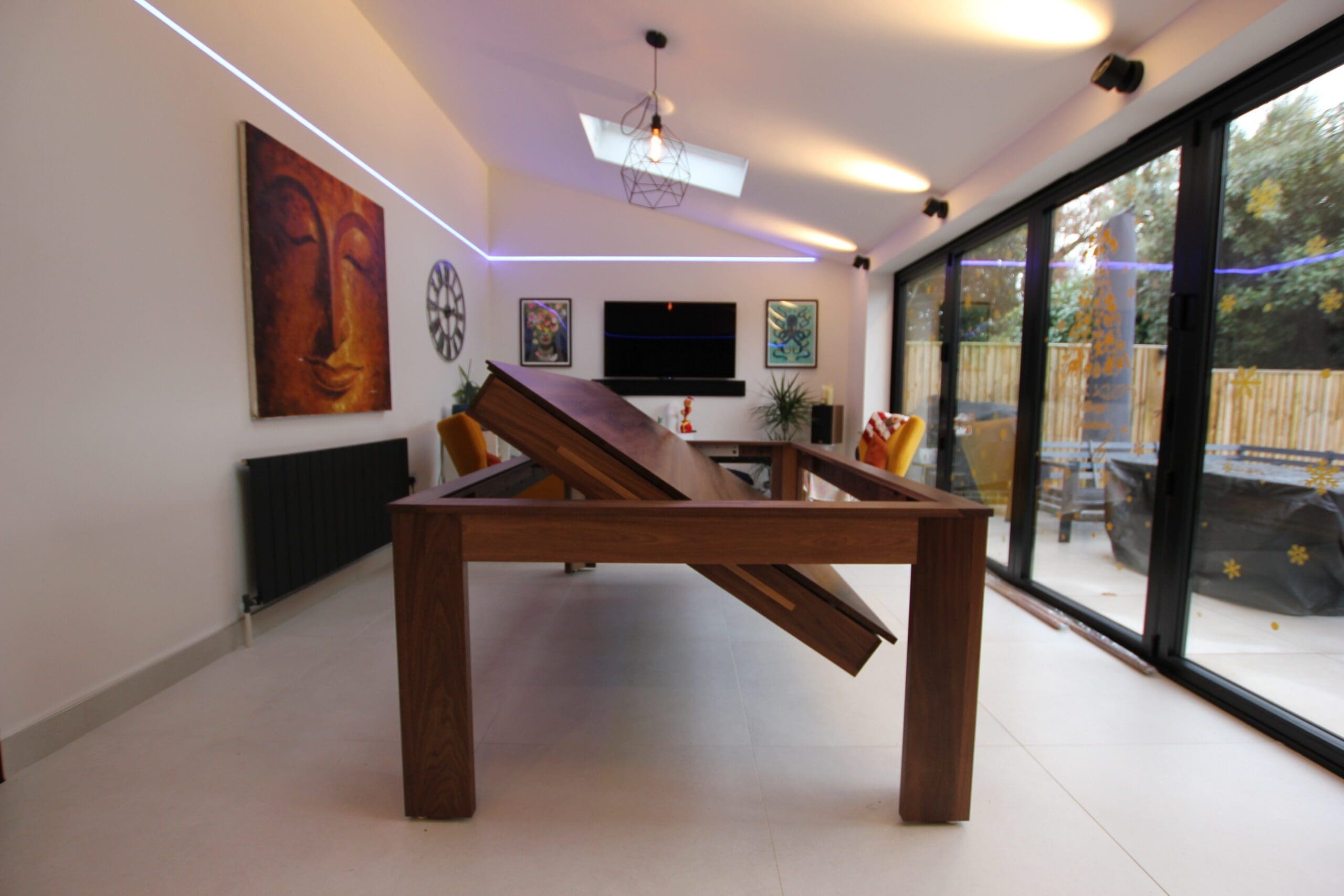The Exquisite rollover pool dining table is available in both English and American pool specifications 5, 6, 7 & 8ft. As with all our rollover tables, the design can be customised or tailored to your exact requirements, whether it’s custom materials, finishes or bespoke design modifications.