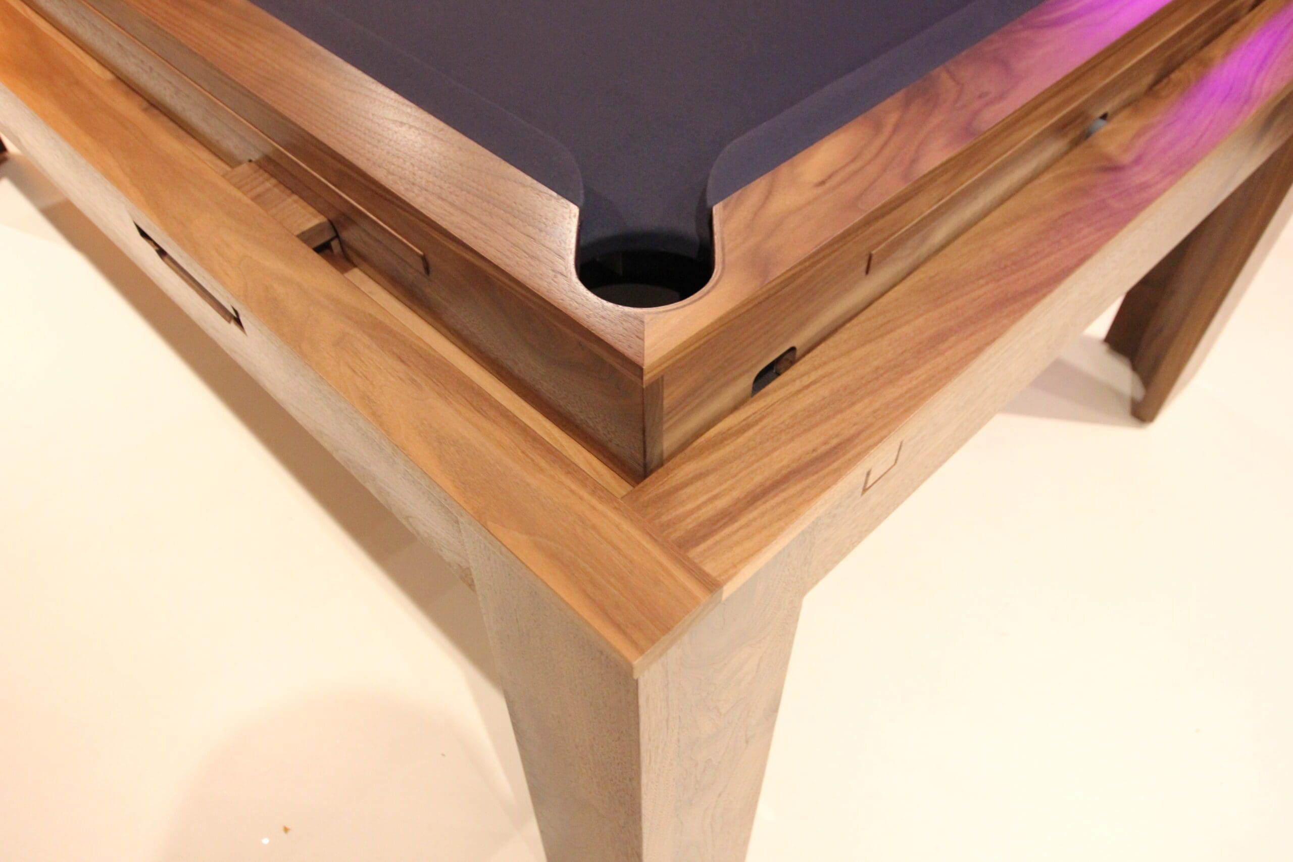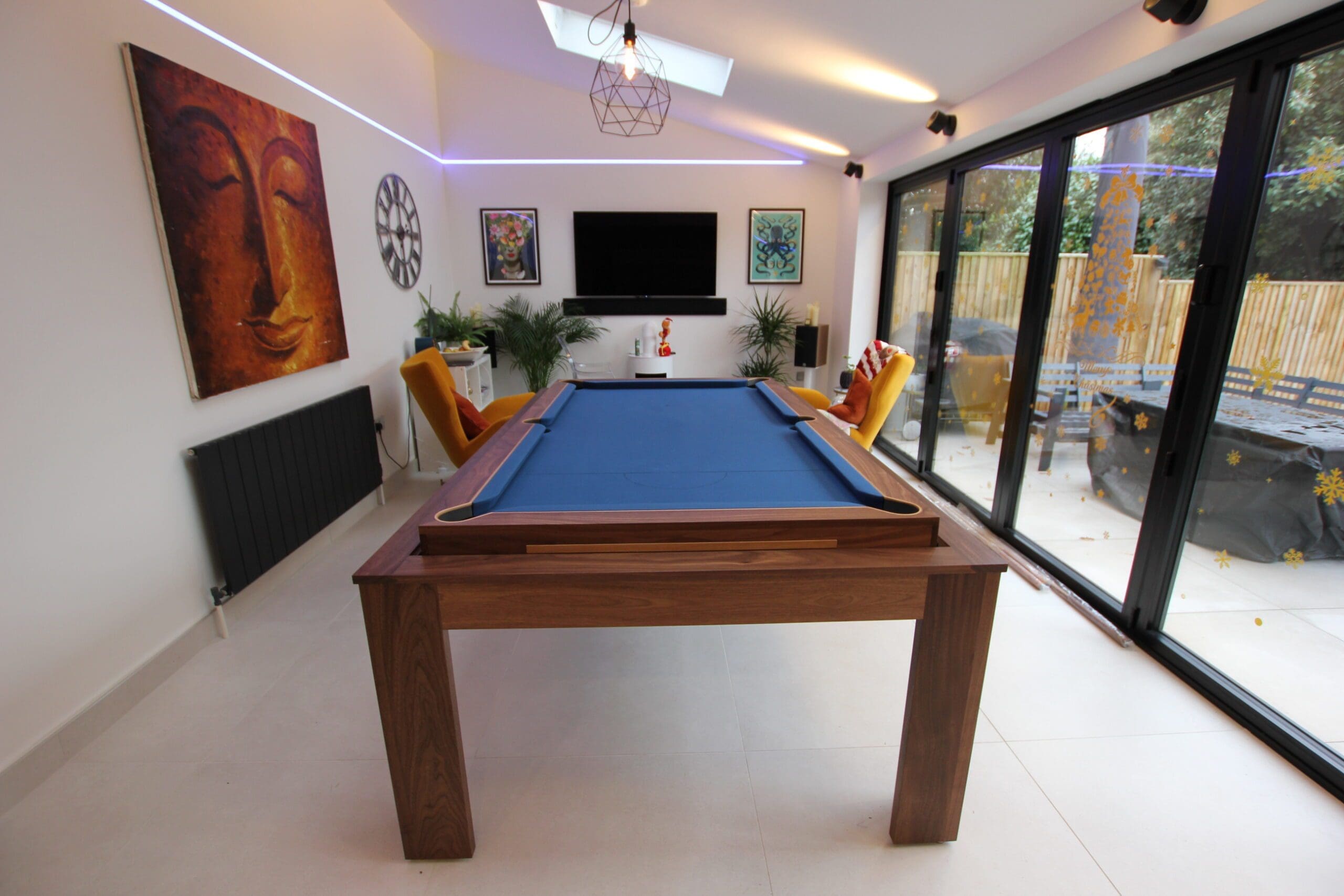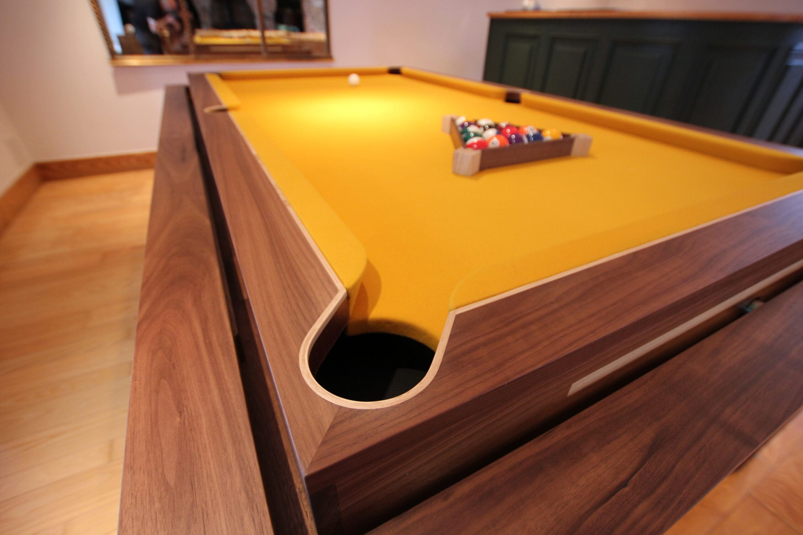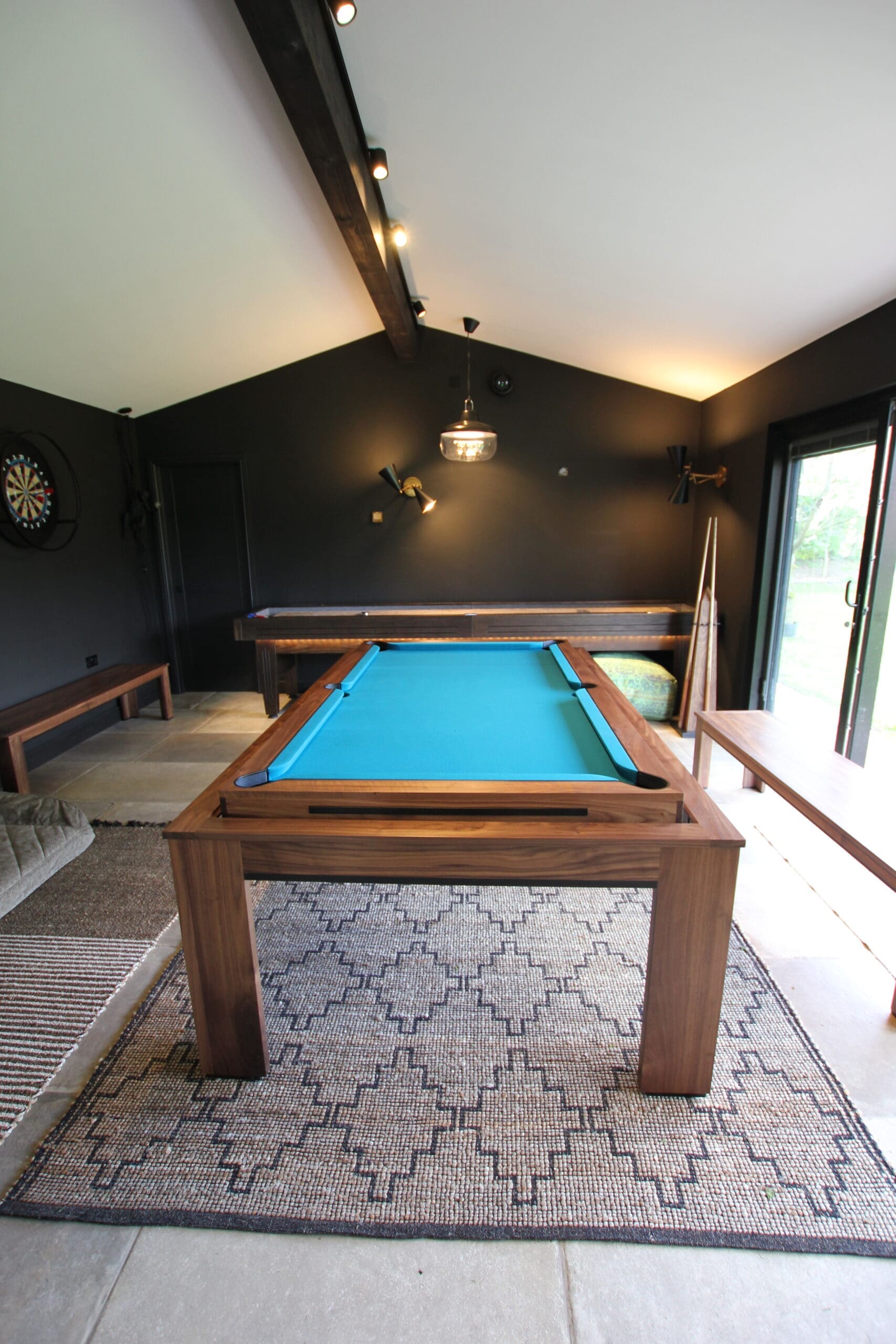 The Exquisite rollover pool dining table is available in both English and American pool specifications 5, 6, 7 & 8ft. As with all our rollover tables, the design can be customised or tailored to your exact requirements, whether it’s custom materials, finishes or bespoke design modifications.