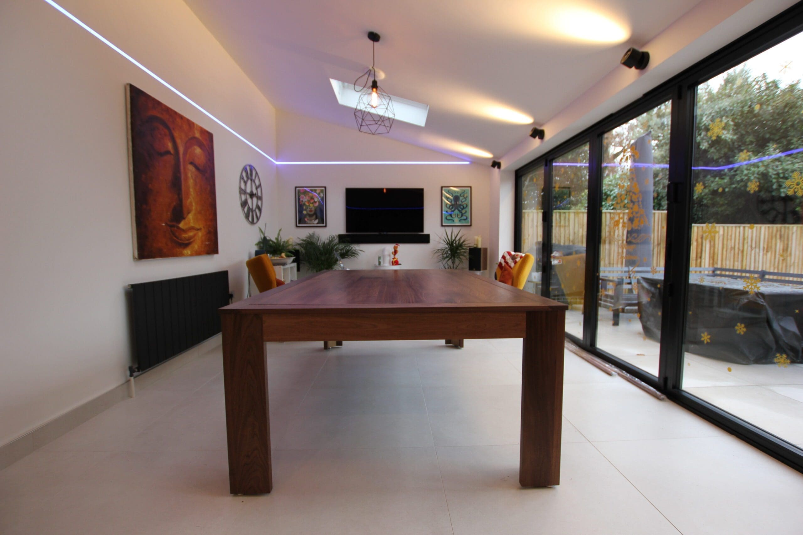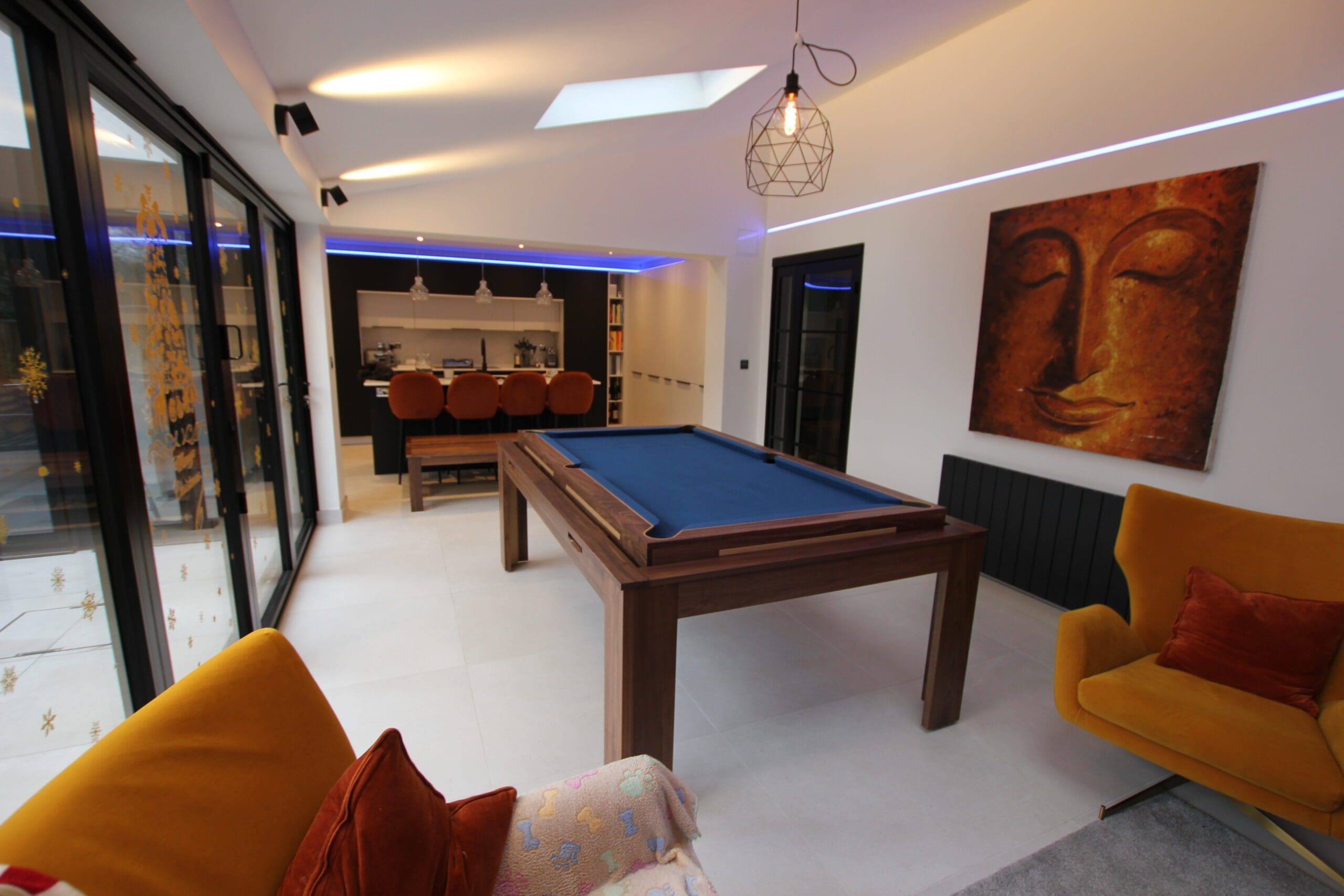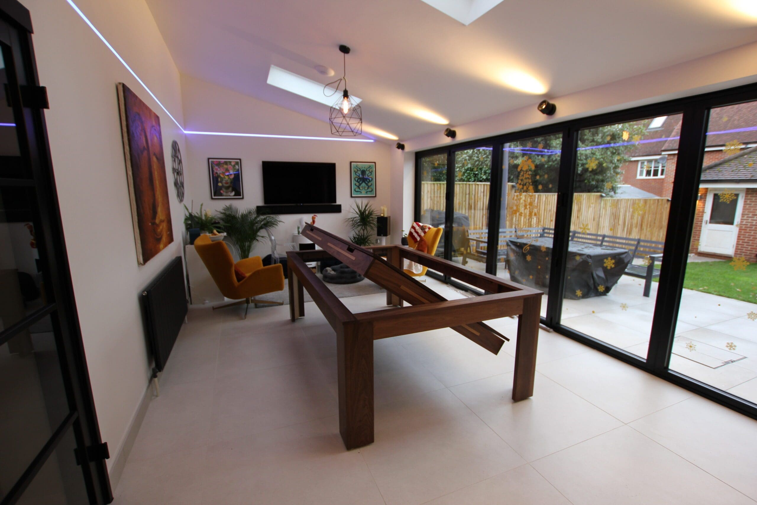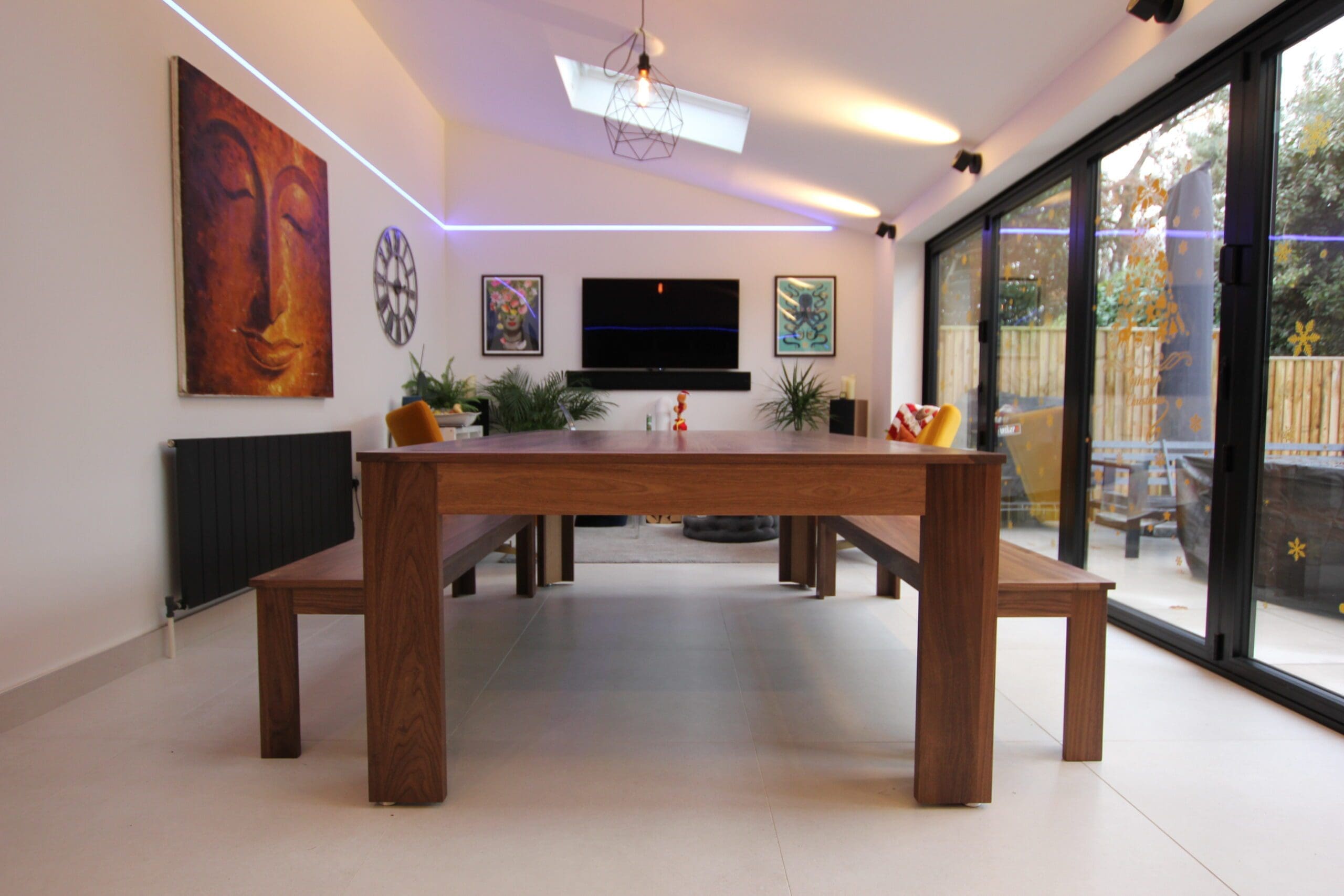 The Exquisite rollover pool dining table is available in both English and American pool specifications 5, 6, 7 & 8ft. As with all our rollover tables, the design can be customised or tailored to your exact requirements, whether it’s custom materials, finishes or bespoke design modifications.